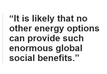 “It is likely that no other energy options can provide such enormous global social benefits,” said study co-author Mark Delucchi, a researcher at the U.C. Berkeley Institute of Transportation Studies.