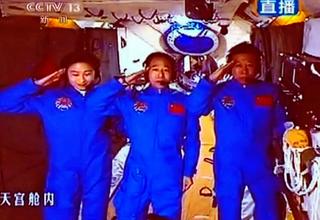 Chinese Taikonauts (astronauts) Jing Haipeng, Liu Wang and Liu Yang ahead of a space exploration launch in June 2012