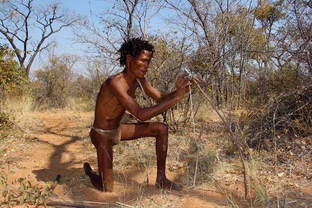 Namibian bushman displays one of Africa’s widely used technology used in trapping small animals. Image Credit: Museo Africano Mundo-Negro