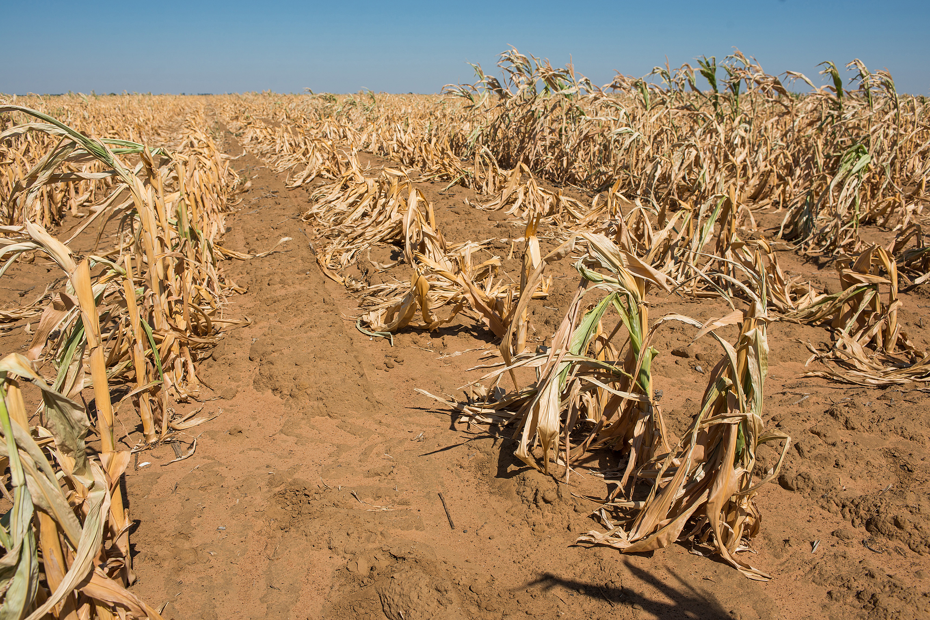 Dried maize corn plants grow in a drought affected field in Lichtenburg, North West Province of South Africa.Photo Credit:Waldo Swiegers/Bloomberg