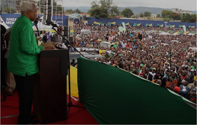 Edward Ngoyai Lowassa addresses a public rally on 30th May 2015 in Arusha Tanzania. Internet File Photo