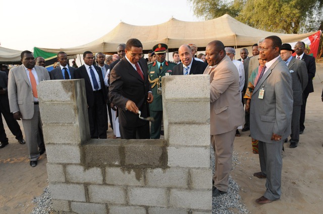 Tanzania President Jakaya Kikwete (Centre) lays foundation stone to kick-off construction of Tanzania Embassy in Muscat, Sultanate of Oman. Photo Credit: Tanzania Embassy, Muscat