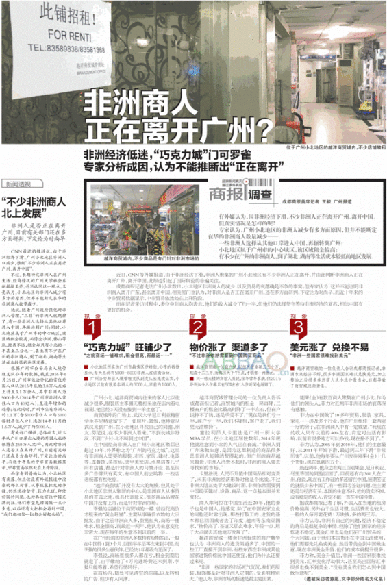 China Business News talked to Kǎlǐfǎ from Sierra Leone, currently an MBA student at a university in Guangzhou and several years resident at Xiǎo Běi Road. Guangzhou’s goods have simply become too expensive, he said, and ever since late 2014 African traders – or the young and adventurous ones, as another African trader named Kùālā put it – have sought better opportunities elsewhere. Kùālā has lived in China for almost 20 years and set up a household, and he agrees that only those long term residents like him are left, the others have gone to India, Vietnam or elsewhere in southeast Asia.
