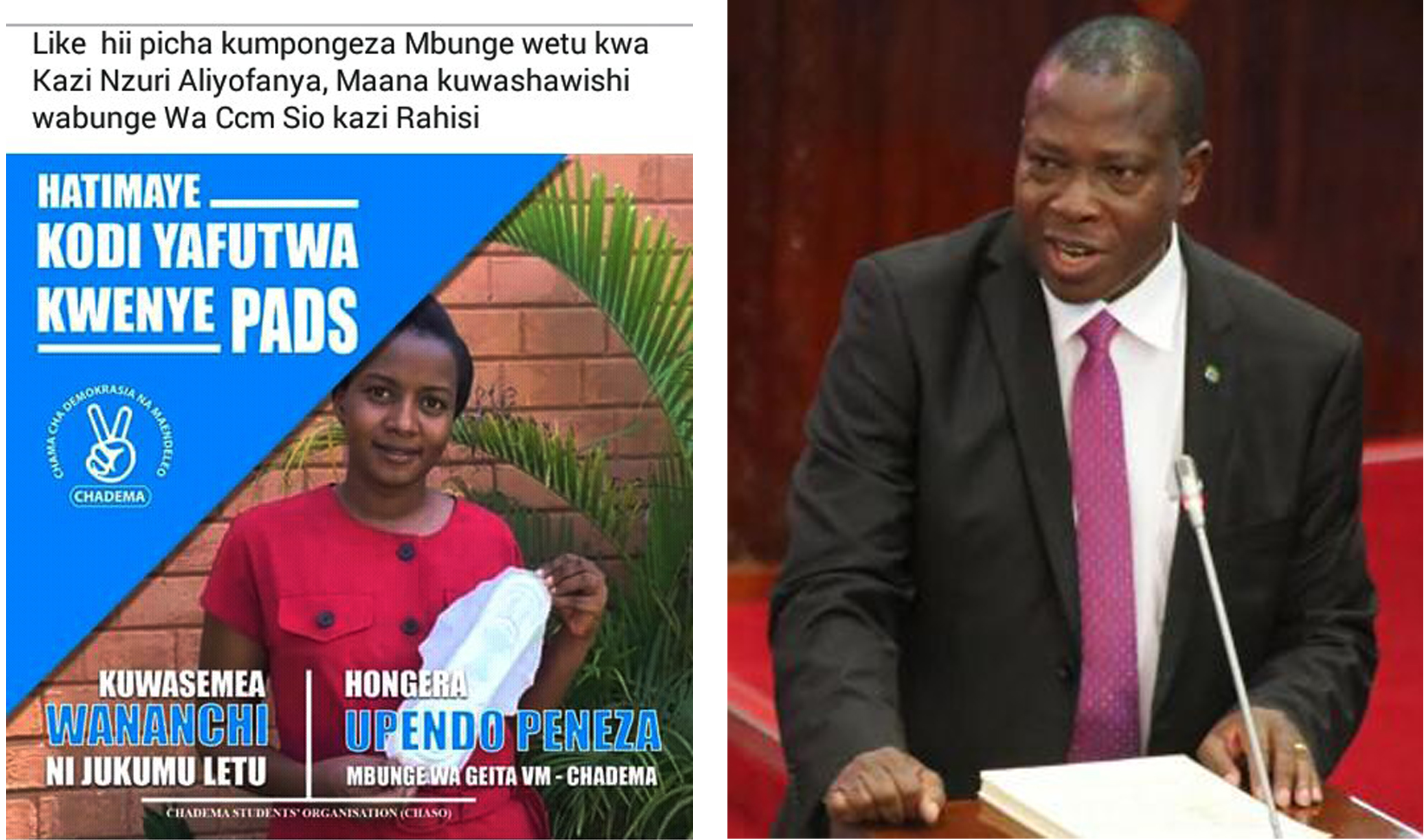 CHADEMA distributed on social media a photograph of the MP Upendo Peneza asking the public to “like this picture to congratulate our Member of Parliament for the excellent job she has done because it is very difficult to convince members of Parliament from [the ruling Chama Cha Mapinduzi] CCM”