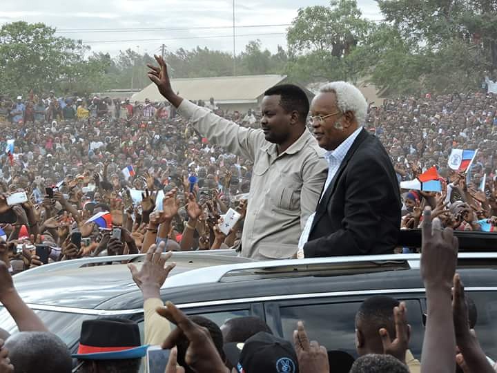 Edward Ngoyai Lowasa (in black jacket) Enters Campaign ground in Arusha with Godbless Lema