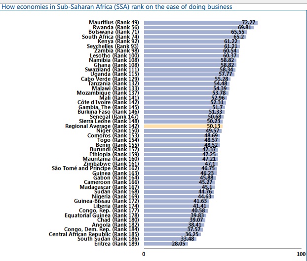 Ranks of some other economies in the region are Rwanda (56), Botswana (71) and South Africa (74). This year’s report also covers Somalia for the first time, bringing the total number of economies covered globally to 190. Somalia is ranked 190.