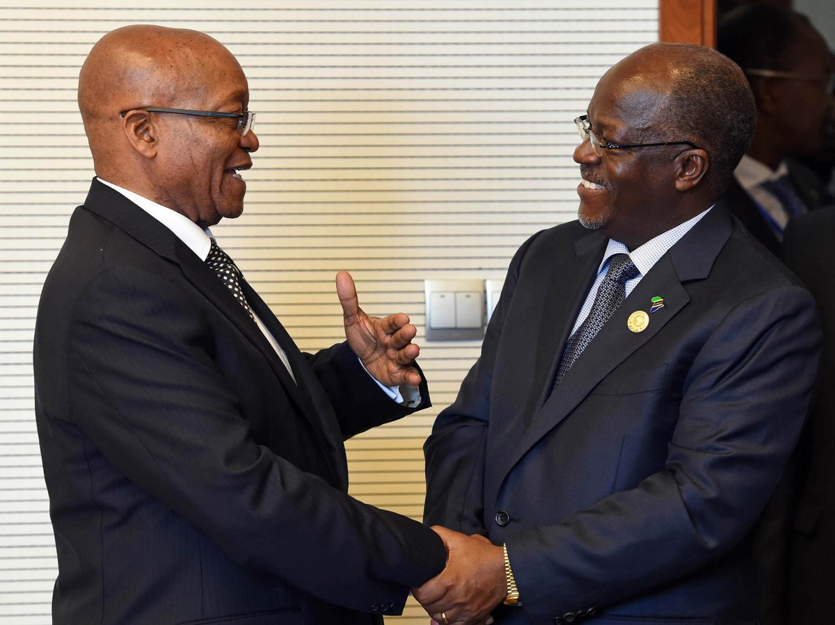 South Africa’s President Jacob Zuma (L), with Tanzania President John Pombe Magufuli