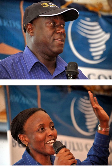 Above: Filbert Rweyemamu, General Manager of Buzwagi Gold Mine greets workers during a ceremony at Bulyanhulu Gold mine to award best workers April 28, 2015. Buzwagi Gold Mine is also an ACACIA mining operation. Below: Janet Reuben-Lukashingo, ACACIA Tanzania Director of Operations greets workers at the ceremony