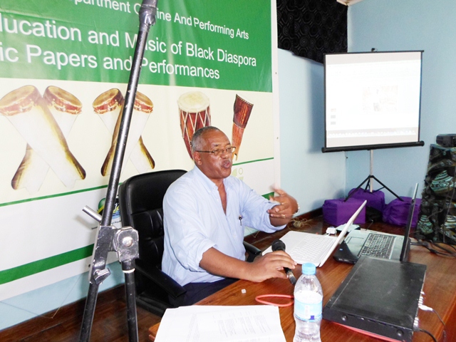 PHOTO CORRECTION: Prof. Meki Nzewi from the University of Pretoria Delivers Keynote Lecture on African Music at the University of Dar es Salaam (Photo Credit: Goethe-Institut Tanzania)