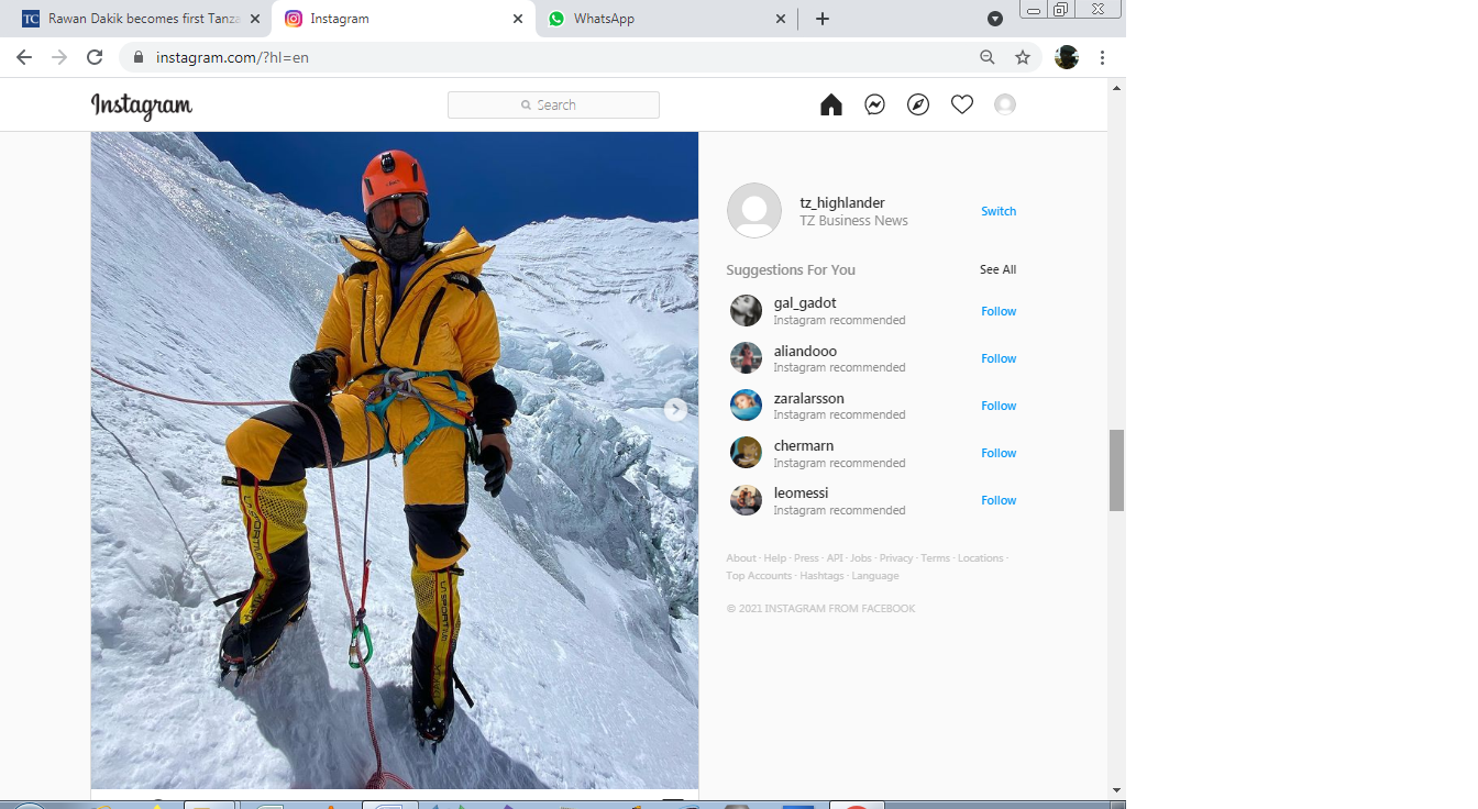 And her patriotism to motherland was noticed.   On May 22, 2021 the Governent owned TV Station (TBC) celebrated Rawan’s arrival at the top of Mount Everest.   Dr Allan Kijazi, Director of Tanzania National Parks (TANAPA) said wants to give Rawan a job when she turns from the Himalayas.